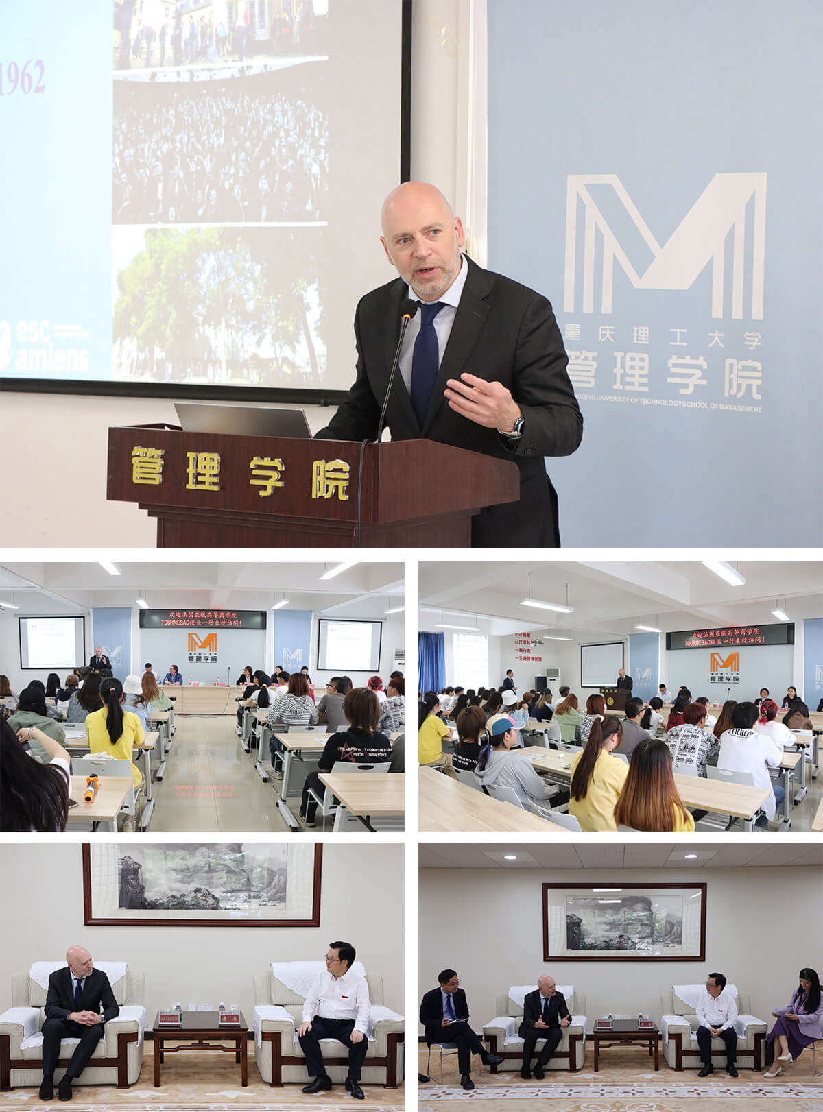 对重庆理工大学的访问,是针对重理工代表团2023年访问我校的一次回访。在重庆理工大学党委康书记的带领下,重理工代表团于2023年末对我校进行了访问,双方签署了合作备忘录,开启了两校合作之门。此次杜勒沙校长的回访,进一步探讨了两校商科专业的合作交流,并与重理工管理学院的学子见面交流。同时,杜勒沙校长还以法国上法兰西大区精英学校联盟副主席的身份,推荐了该联盟其他理工类院校的资源,以促进法国上法兰西大区高校与包括重理工在内的重庆地区的教育合作与交流。